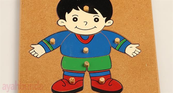 Balita sudah mulai belajar memahami konsep diri. Mereka pun mulai belajar tentang nama bagian-bagian tubuh dari kepala hingga ke kaki. Untuk membantunya memahami bagian tubuh ajak anak Anda menyusun puzzle yang dibagi berdasarkan bagian anggota tubuh. Selain mengenal nama anggota tubuh serta bagian kiri dan kanan, anak juga belajar kordinasi tangan dan mata untuk menyelesaikan puzzle tubuh laki-laki ini.