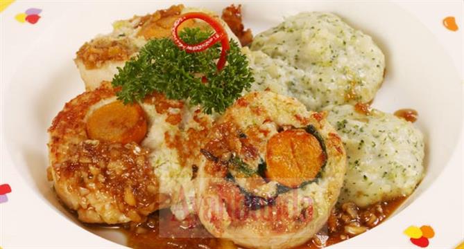 - Sajikan pure kentang bersama ayam gulung, beri saus. Sajikan hangat.