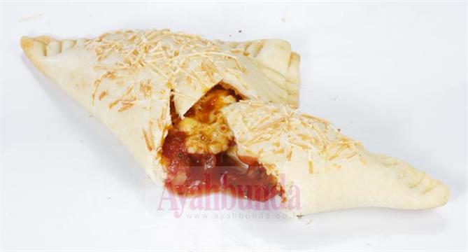 - Lipat tiap bagian pizza hingga membentuk segitiga. Tekan-tekan bagian tepinya dengan bantuan garpu hingga saling melekat.